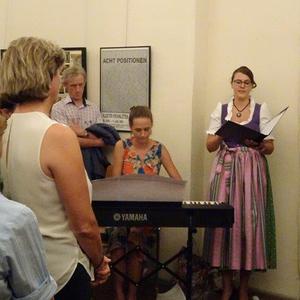 Sinnige Erläuterungen zur Ausstellung gab es dann vom Veranstalter Dr. Kurt Herler. Die Eröffnung wurde von Christina Theißl (Gesang) und Lena Spannring (Klavier) wunderbar musikalisch umrahmt.