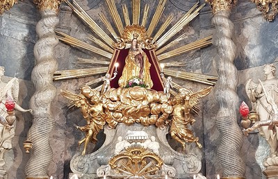 Die Gnadenstatue der Mutter Gottes prägt den imposanten Innenraum der Basilika Mariatrost.