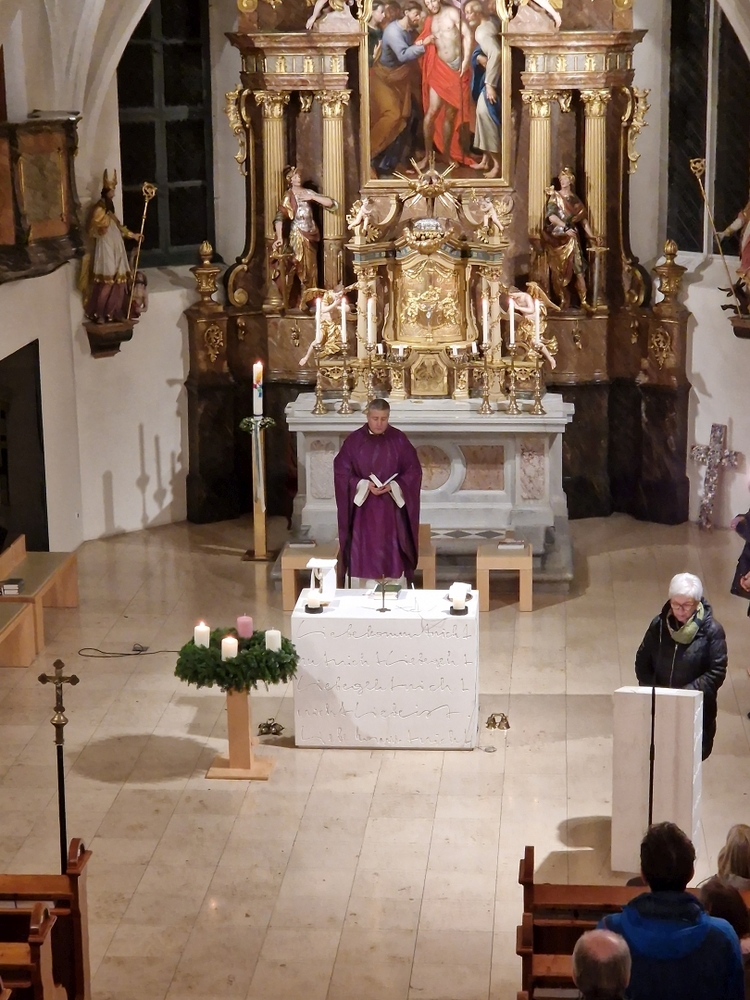 Bei der Wort-Gottes-Feier am Sonntag sprach WGF-Leiterin Christa Habith in Bezug auf Jesaja von der uralten Sehnsucht der Menschen nach Frieden und Gerechtigkeit. Nur durch Umkehr, siehe Johannes der Täufer (Mt 3, 1-12), kann Veränderung geschehen und Gott in uns ankommen. Umkehren heißt Haltungen überdenken, Altes verlassen und die Herzen öffnen.