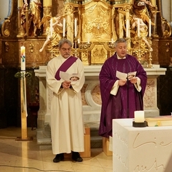 Nach dem feierlichen Einzug betonte Vikar Norbert in der Begrüßung, wie schön es ist, dass Johannes neben vielen anderen ehrenamtlichen Tätigkeiten (Kantor, Organist …) nun auch den Dienst des Diakons ausüben wird.