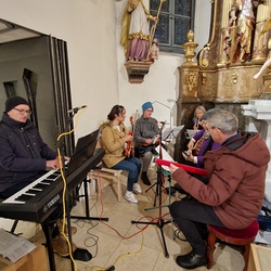 • an die sechs Musiker, die in ihrer Freizeit unseren Gesang unterstützten und den Gottesdienst feierlich mitgestalteten: Chiara und Katharina Guggi-Bärnthaler (Querflöte), Helma Arjmand (Geige), Ursula Schrei (Gitarre), Maria Kleindienst (Gitarre) und Michael Krenn (Bass)