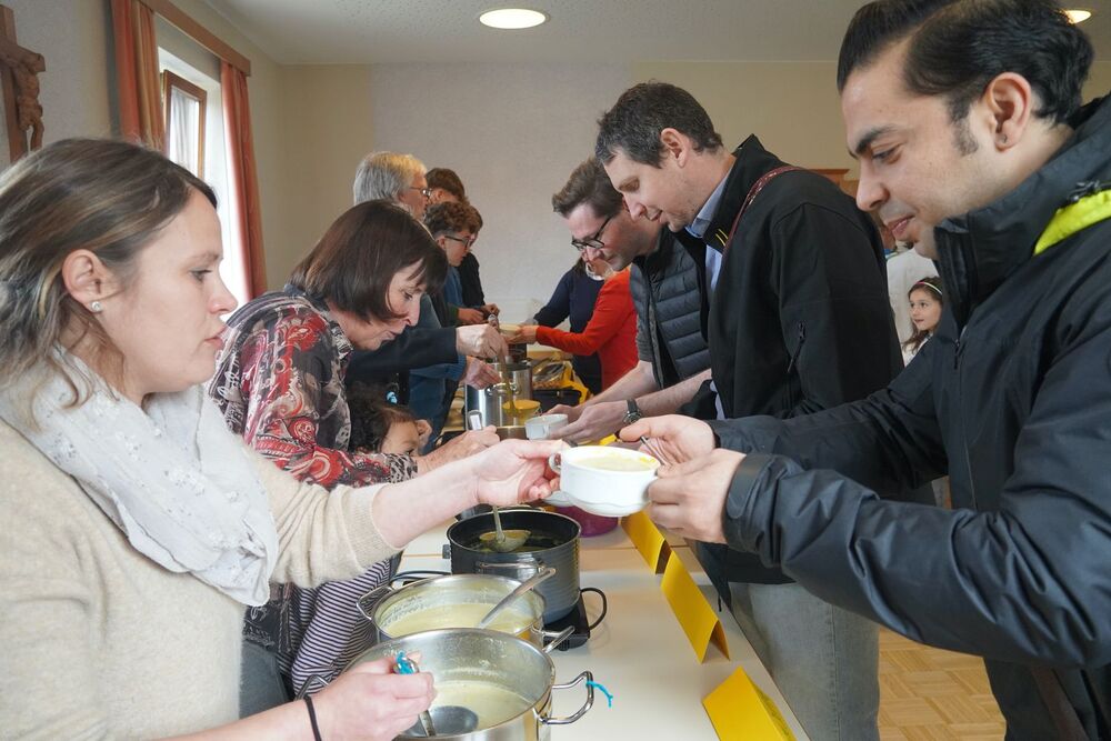 Nach der liebevoll gestalteten Wort-Gottes-Feier mit WGF-Leiterin Elisabeth Schöpf, traf man sich zum Suppen-Essen im Pfarrheim. Und wir hatten zweimal „volles Haus“, zuerst in der Kirche und dann im Pfarrheim! Über die vielen Gäste freuten sich der Pfarrgemeinderat und eine Firmgruppe mit ihren Begleiterinnen, die Suppe gekocht hatten und fleißig mitanpackten, sodass der Suppensonntag ein toller Erfolg wurde. Der Erlös kommt der KFB und der Pfarrcaritas zugute.