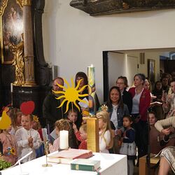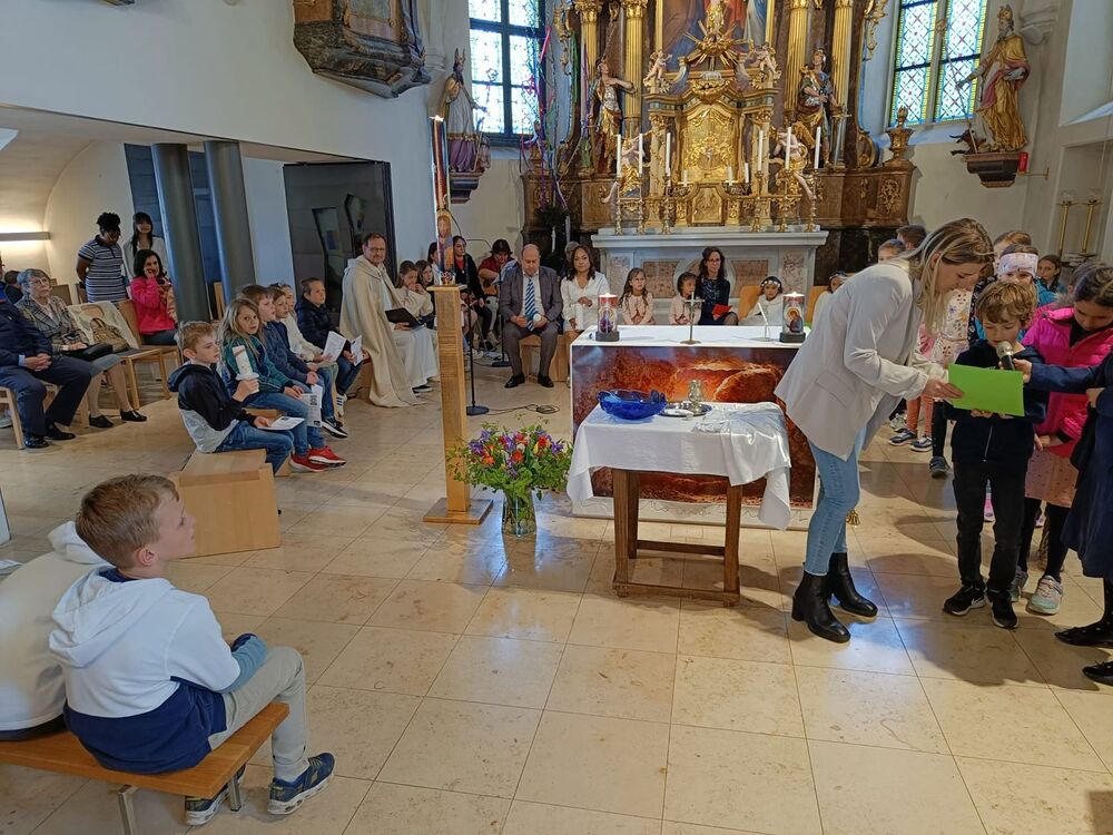 Am 22. April feierten die Erstkommunionkinder nach ihrem letzten Workshopnachmittag ihr Tauferneuerungsfest um 16:30 Uhr in unserer Pfarrkirche.