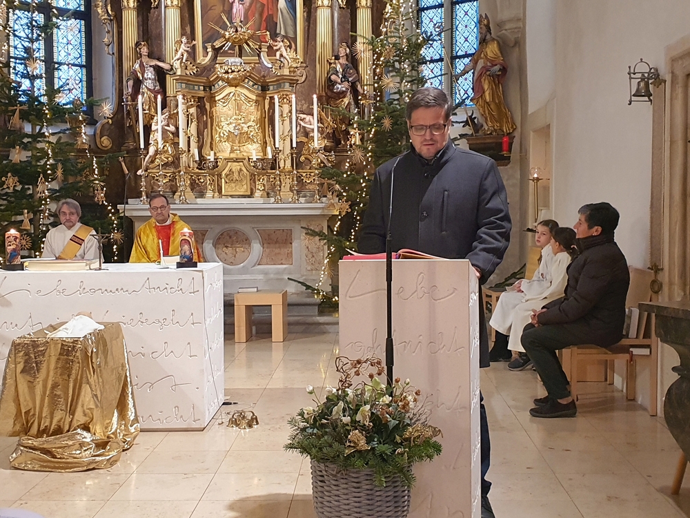 Vikar Norbert Glaser feierte mit vielen Gläubigen die Christmette und wurde von Diakon Michi Zepf unterstützt. Die Freude über die Geburt des Jesukindes, unseres Heilands, stand im Mittelpunkt und fand auch in den vielen schönen Weihnachtsliedern, die gemeinsam gesungen wurden, ihren Ausdruck. Die Friedensbotschaft der Heiligen Nacht möge Kreise ziehen und sich auf unserer Erde ausbreiten!