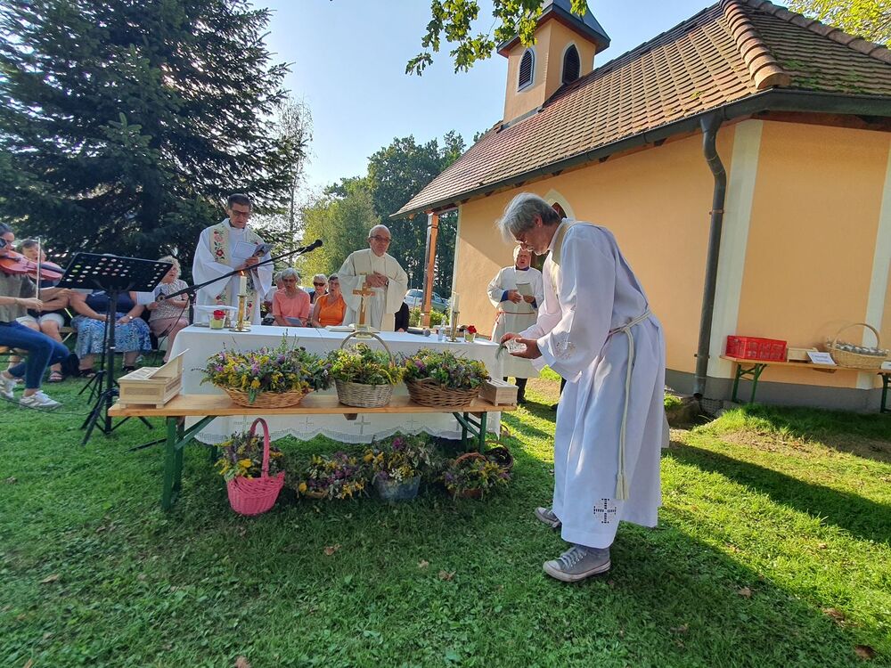 Auch die mitgebrachten Kräuterbüschel wurden anlässlich des bevorstehenden Marienfeiertages gesegnet.