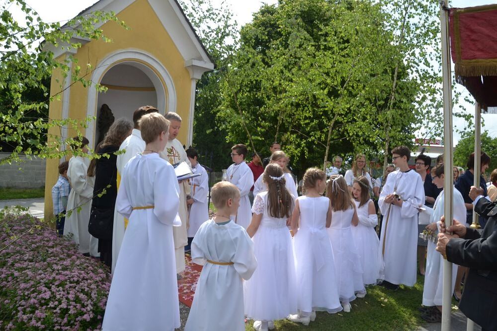 In schöner Gemeinschaft feierten die Pfarren Premstätten und Wundschuh das Fronleichnamsfest heuer in Wundschuh. Nach dem festlichen Gottesdienst mit Pfarrer Claudiu Budau und Diakon Wolfgang Garber in der Pfarrkirche Wundschuh bewegte sich die Prozession, musikalisch begleitet von der Blasmusik, durch den Ort zu den Altären, wo Kinder und Erwachsene Gott singend und betend Lob, Preis, Dank und Bitten darbrachten. Mit der letzten Station in der Kirche fand die Fronleichnamsprozession ihren feierlichen Abschluss.