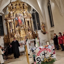 - Zuerst wurde in der Pfarrkirche mit einer Andacht gedankt.