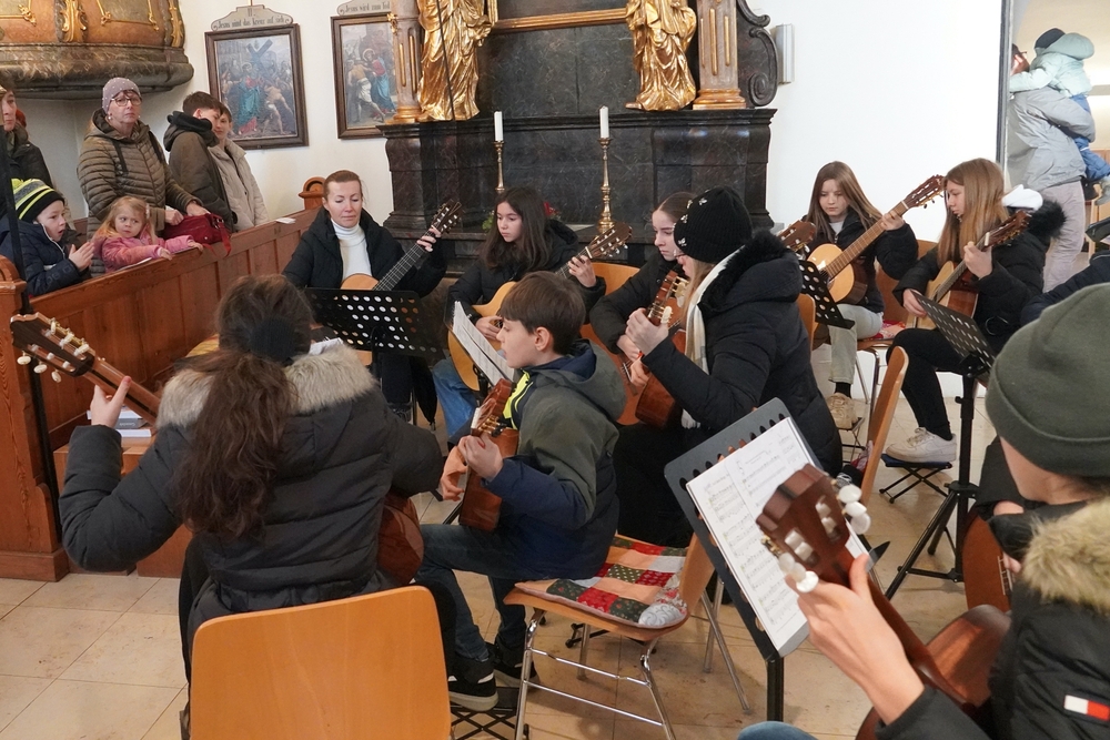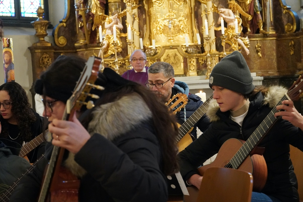 Gitarrenklänge erfüllten am Sonntag, dem 3. Dezember, den Kirchenraum bei der heiligen Messe, die Vikar Norbert Glaser und Diakon Franz Habith mit der Pfarrgemeinde feierten.