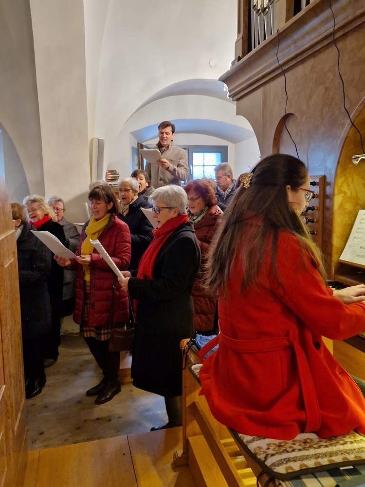 Unter der Leitung von Alisa Adzhadzh und mit Johannes Chum an der Orgel erklangen adventliche Melodien, die sowohl die freudige Erwartung als auch die Sehnsucht nach Zusammenhalt und die Hoffnung auf Frieden ausdrückten.