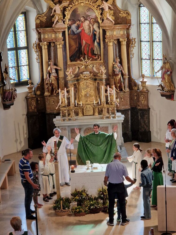 Ein großer Dank gilt allen, die dieses Fest den Kindern und ihren Familien ermöglicht haben: unserem Vikar Gerhard Hatzmann für die herzliche Feier, den Minis und der Mesnerin, dem Pfarrgemeinderat für das Richten des Feierplatzes im Freien, der Blasmusik, die alle begrüßte, den Musikerinnen und Musikern, die den Gottesdienst festlich umrahmten, und dem Sozialkreis für die Bewirtung nach dem Gottesdienst, sowie allen anderen, die still und unauffällig im Hintergrund zum Gelingen beigetragen haben.