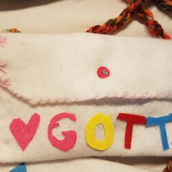 Die Filztaschen, die den Kindern am Ende der Feier überreicht wurden, sind Zeichen für unser eigenes Leben. Sie zeigen uns, dass so manches in unserem Leben nicht immer so einfach ist, dass es ganz schön viel Vorbereitung und Geduld braucht bis so ein Werkstück/unser Leben fertig/vollendet ist.