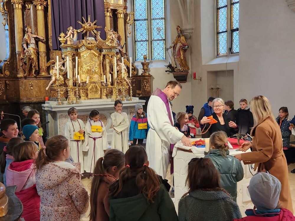 So viele Eltern begleiteten ihre Kinder und standen allen hilfreich zur Seite! Ein herzliches Danke dafür! Auch danke an Franziska Zachenegger und Cesar Cabesa, die die Kirchenführung mit den Kindern leiteten.