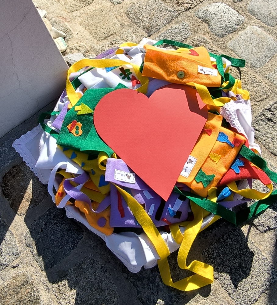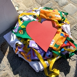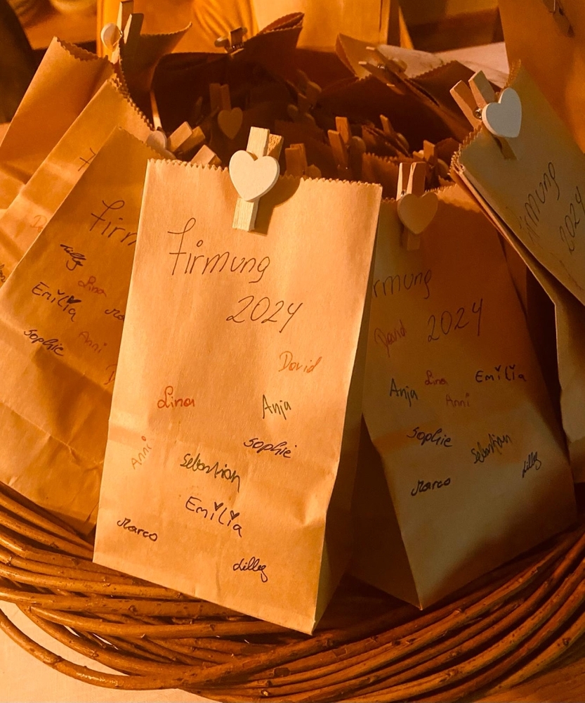 Als Zeichen für diese Liebe und Verbundenheit mit Gott bekamen die Erstkommunionkinder ein Diptychon in einer selbstgebastelten Tasche aus dem Werkunterricht der Schule als Erinnerung mit nach Hause.