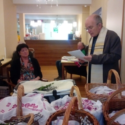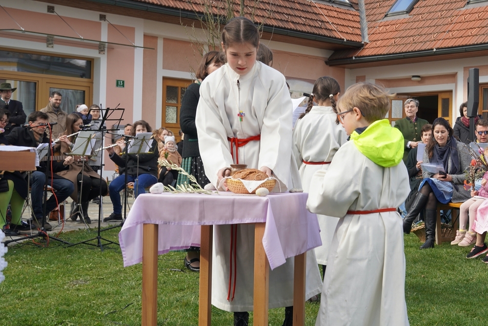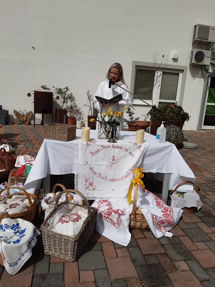 Diakon Franz Habith gestaltete um 11 Uhr in der Kaiserwald-Kapelle die Palmsegnung und Pastoralreferentin Ines Kvar leitete um 14:30 Uhr im Zettling-Park die Feier zur Segnung der Palmzweige.
