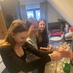 In einer gemeinsamen Backstunde haben wir am Tag zuvor kleine Köstlichkeiten zubereitet, die wir am Ende der Feier an die Gottesdienstbesucher*innen verteilen durften.