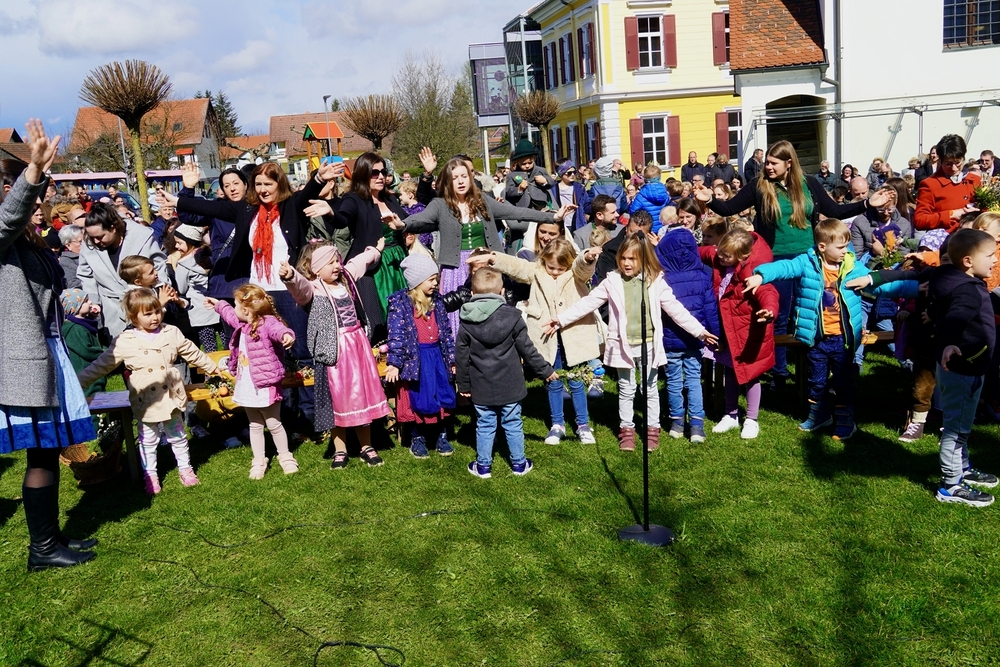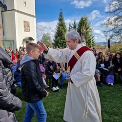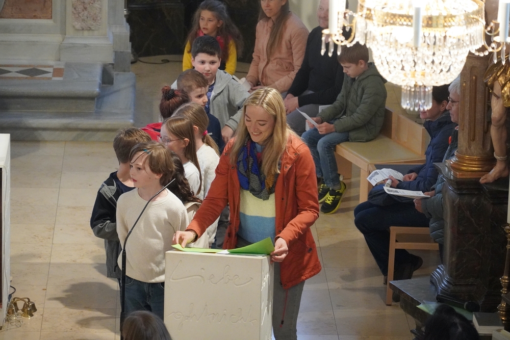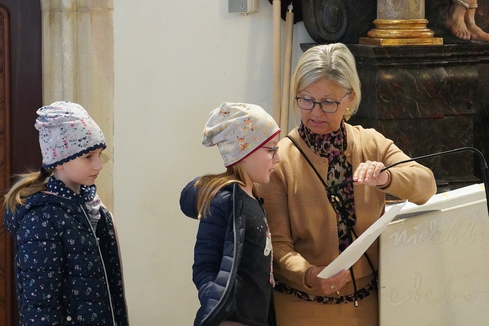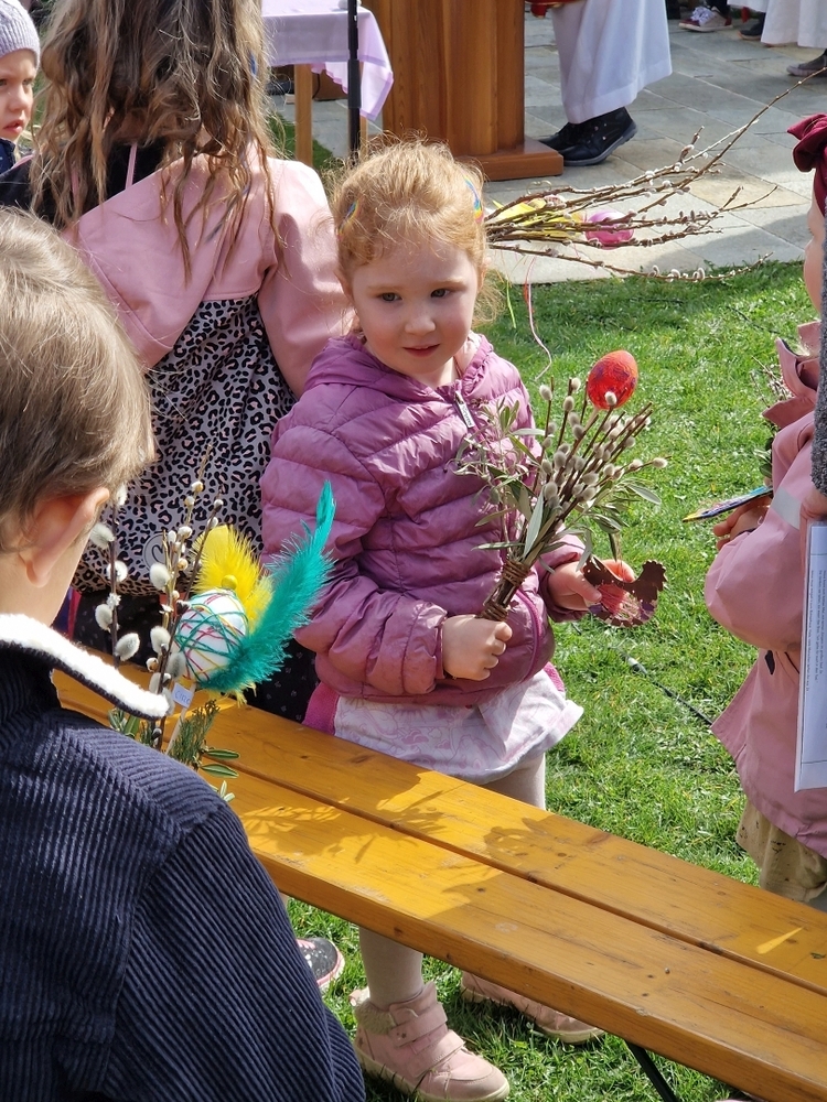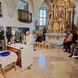 So feierten Groß und Klein mit Vikar Gerhard Hatzmann und Diakon Michi Zepf die heilige Messe zum Palmsonntag in einem schönen Miteinander. Die Kindergartenkinder sowie einige MS-Schülerinnen gestalteten die Feier mit und die MINIS versahen nicht nur ihren Dienst am Altar, sondern trugen auch die „Passion“ vor - in einer einfacheren Fassung, mit passenden Liedstrophen und Symbolen. Auch die Landjugend nahm teil und kam nach guter Tradition mit ihrem großen Palmbuschen.