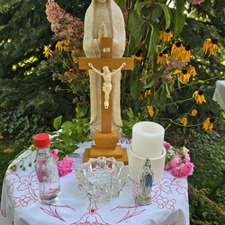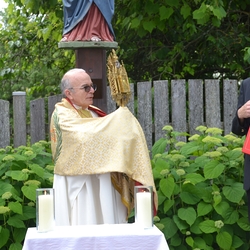 Eine Besonderheit gab es beim 1. Altar: Dort segnete Vikar Norbert Glaser zusätzlich die neue Marienstatue in der frisch renovierten „Hoferkapelle“.