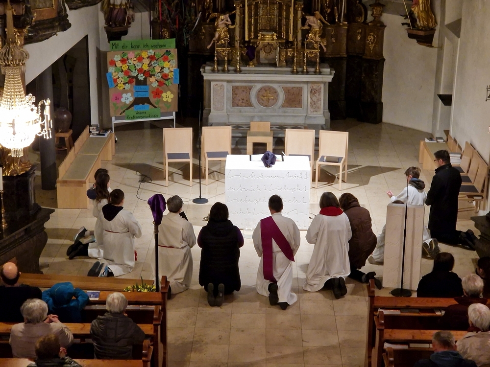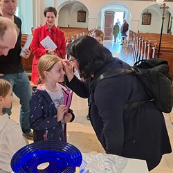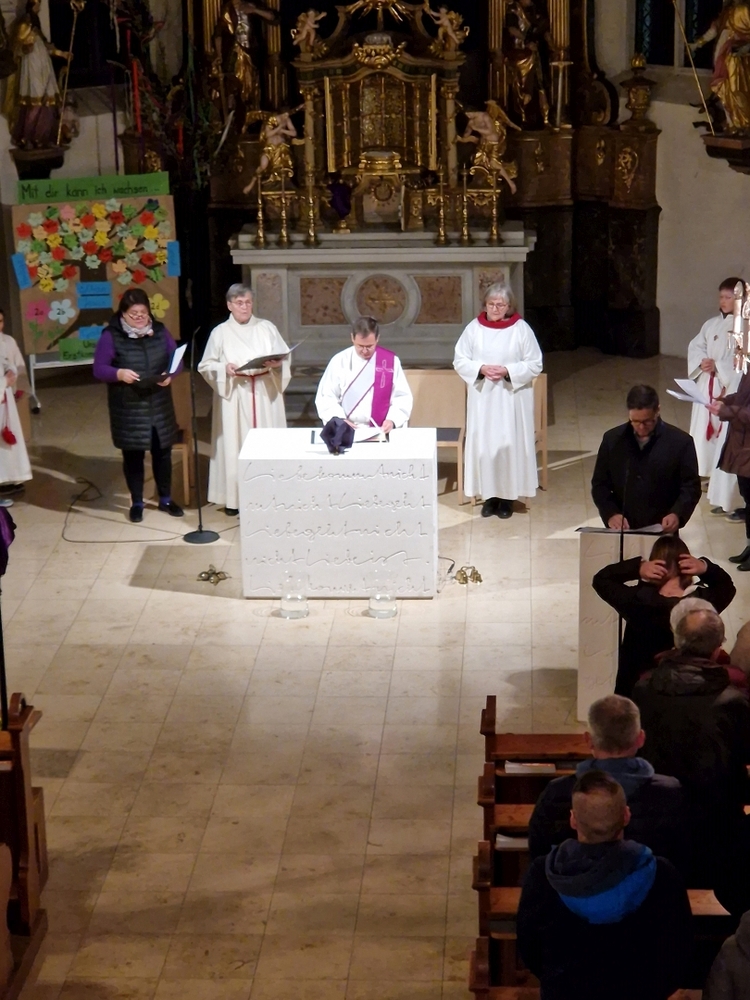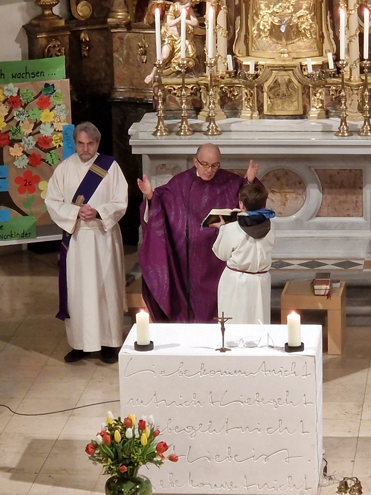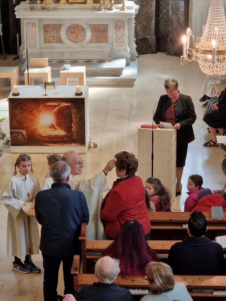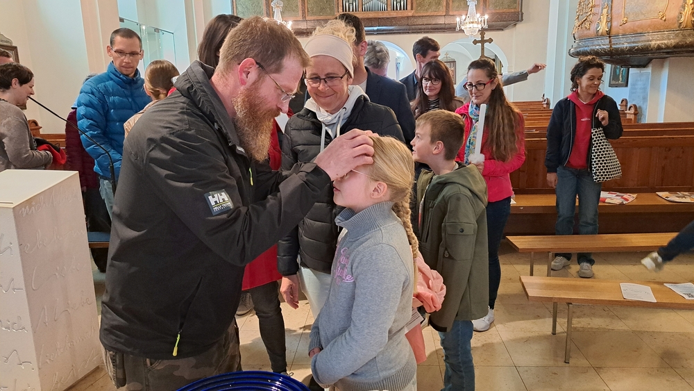 Beim Aschermittwoch-Gottesdienst mit Vikar Norbert Glaser und Diakon Michi Zepf erhielten die vielen Gläubigen, die gekommen waren, das Aschenkreuz auf die Stirn gezeichnet. Es ist ein starkes sichtbares Zeichen, das „hautnah“ an die Vergänglichkeit erinnert und uns auffordert, im Einklang mit dem Evangelium zu leben.