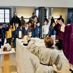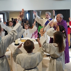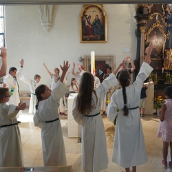 • in spielerischer Form die Antworten der hl. Messe kennen lernen und üben