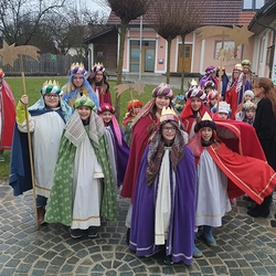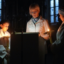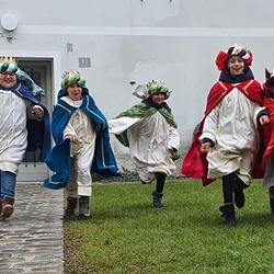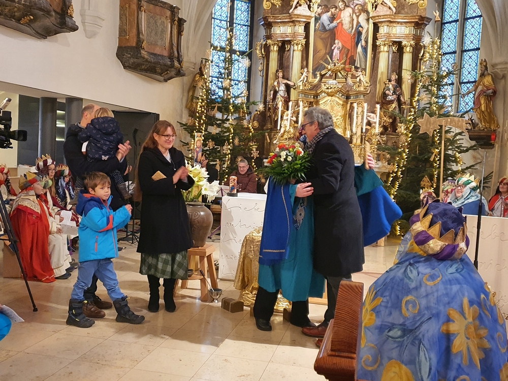 Eine Sternsingergruppe überbrachte die Botschaft, die schon Tage zuvor in den Häusern verkündet worden war: Gott braucht uns, braucht dich und mich, um der Gerechtigkeit auf Erden eine Chance zu geben. Er braucht unsere Solidarität mit den Ärmsten!