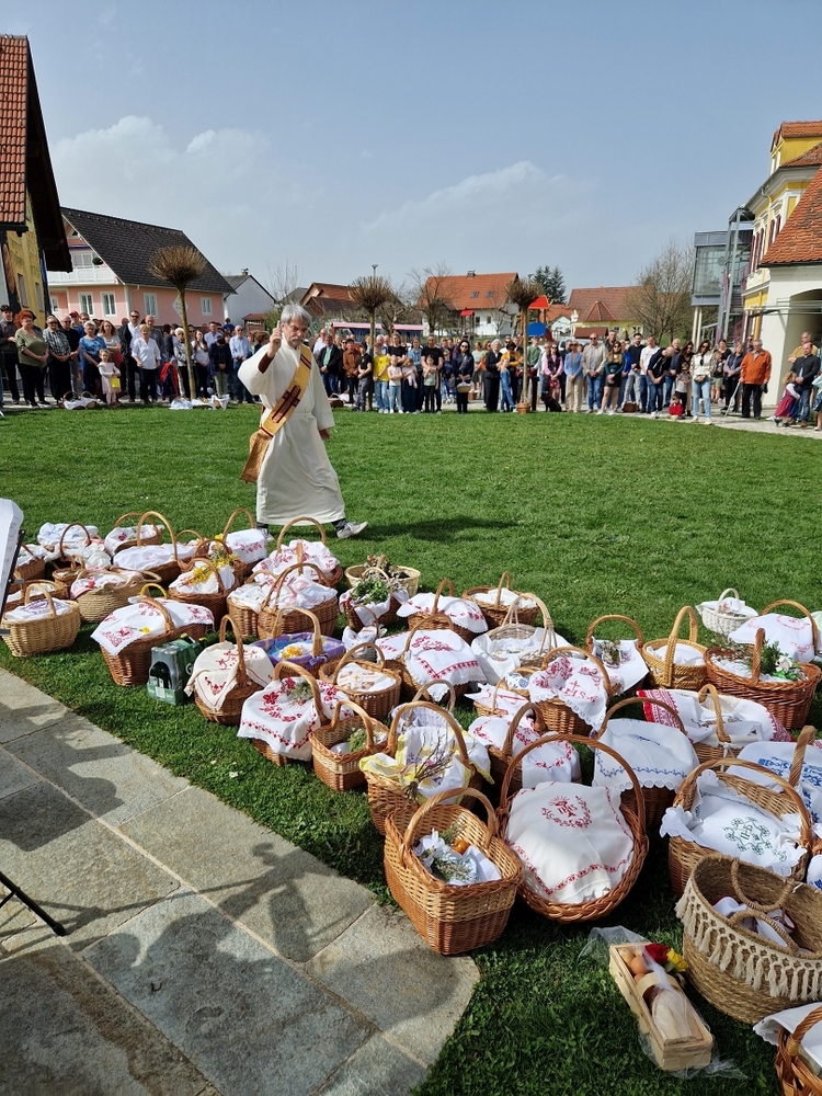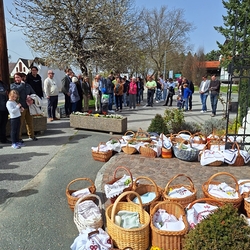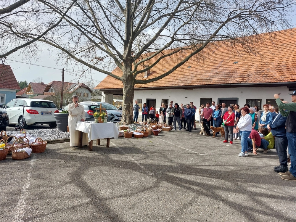 Ein Fixpunkt im Kirchenjahr ist für viele Christinnen und Christen die Osterspeisensegnung. Auch in unserer Pfarre kommen immer viele Menschen zu den einzelnen Stationen, so auch heuer wieder am Karsamstag.