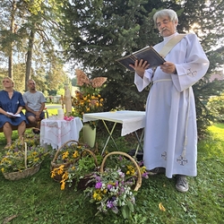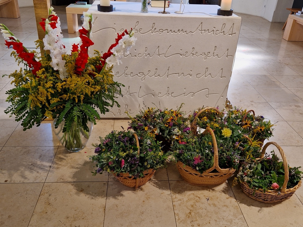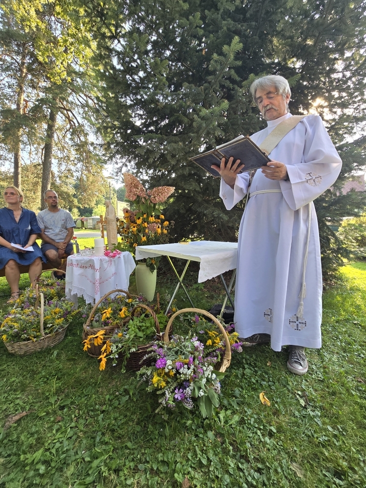 Zur Ehre der Gottesmutter und der Schöpfung segnete Diakon Michi Zepf am 15. August, dem "Großen Frauentag“, in einer Wort-Gottes-Feier in der Kaiserwald-Kapelle die mitgebrachten Kräuterbüschel.