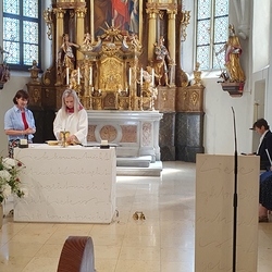 Die Festmesse mit Vikar Gerhard Hatzmann und den Diakonen Franz und Wolfgang wurde musikalisch vom Vokalensemble der Pfarre Gleisdorf gestaltet. (Missa fantastica – Komposition & Leitung: Maria Suntinger; Orgel: Magdalena Moser)