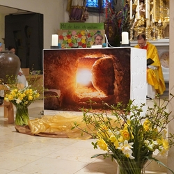 Am frühen Ostermorgen gingen auch wir als Glaubensgemeinschaft durchs Dunkel zum Licht und feierten in unserer Kirche die Auferstehung - Erlösung von Tod und Trauer, Geschenk neuen Lebens!
