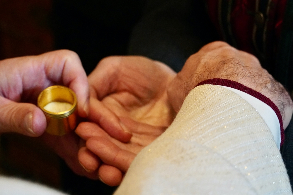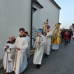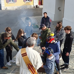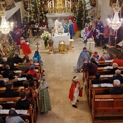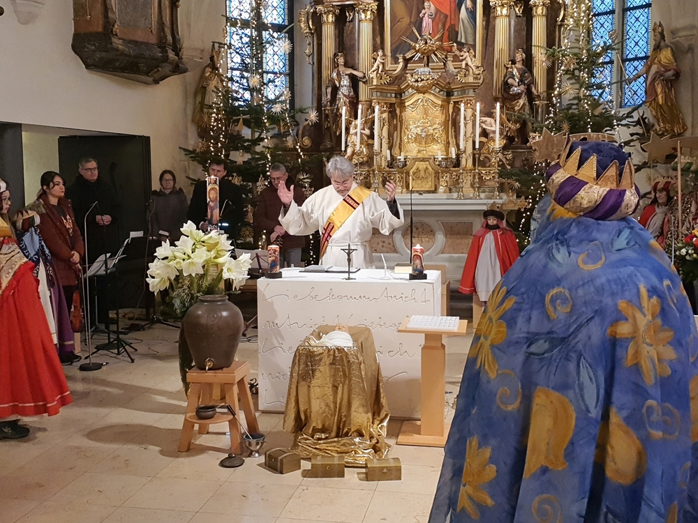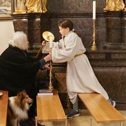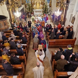 Nach altem Ritus segnete Diakon Michi Zepf nach dem Schlusssegen noch das „Dreikönigswasser“ und das Salz, welches in kleinen Fläschchen mitgenommen werden durfte. Die Allerheiligen-Litanei wurde von Johannes Chum vorgetragen.