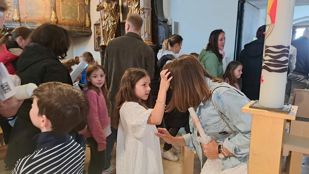 Ein besonderes Highlight war das gegenseitige „Segnen“ als Abschluss des Festes, bei dem die ganze Familie der Erstkommunionkinder sich gegenseitig etwas Gutes wünschte.
