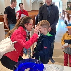 Im Anschluss des letzten Vorbereitungsworkshops in der Pfarre feierten die diesjährigen Erstkommunionkinder gemeinsam mit ihren Familien sowie Taufpatinnen und Taufpaten das Tauferneuerungsfest.