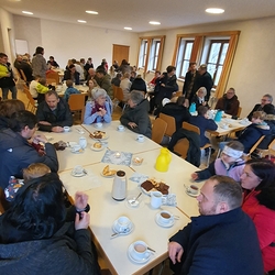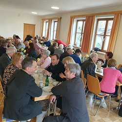 Seelisch gestärkt, begaben sich die älteren Herrschaften nach dem Gottesdienst zum gemütlichen Beisammensein ins Pfarrheim, wo Elisabeth Schöpf alle herzlich willkommen hieß.