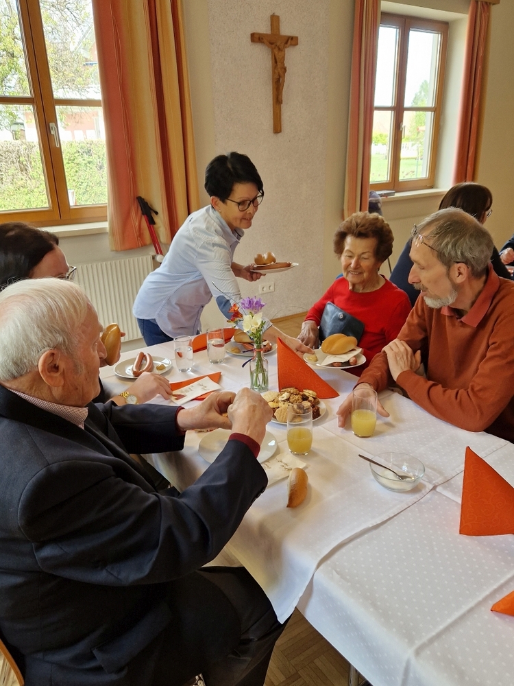 Nach der schönen Feier folgten viele der Einladung des PGR zum Osterfrühstück im Pfarrheim und genossen in österlicher Stimmung das Essen und die Gemeinschaft!