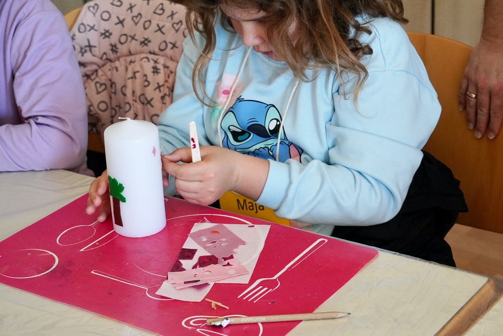 • das eigene Feierheft gestalten, eine Brosche aus Fimo und den Kirchenschmuck basteln
