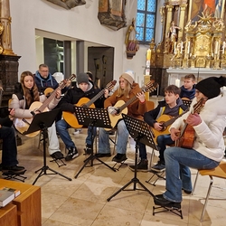 Das Gitarrenensemble der Musikschule Premstätten geleitete uns sehr stimmungsvoll durch den Gottesdienst am 1. Adventsonntag, den Vikar Norbert Glaser und Diakon Michi Zepf mit uns feierten.