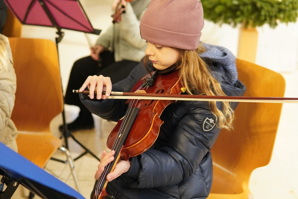 Musikalisch umrahmte wieder die Musikschule Premstätten die Feier. Volksmusik und Streichermusik erfüllten die Kirche mit freudvollen vorweihnachtlichen Klängen.