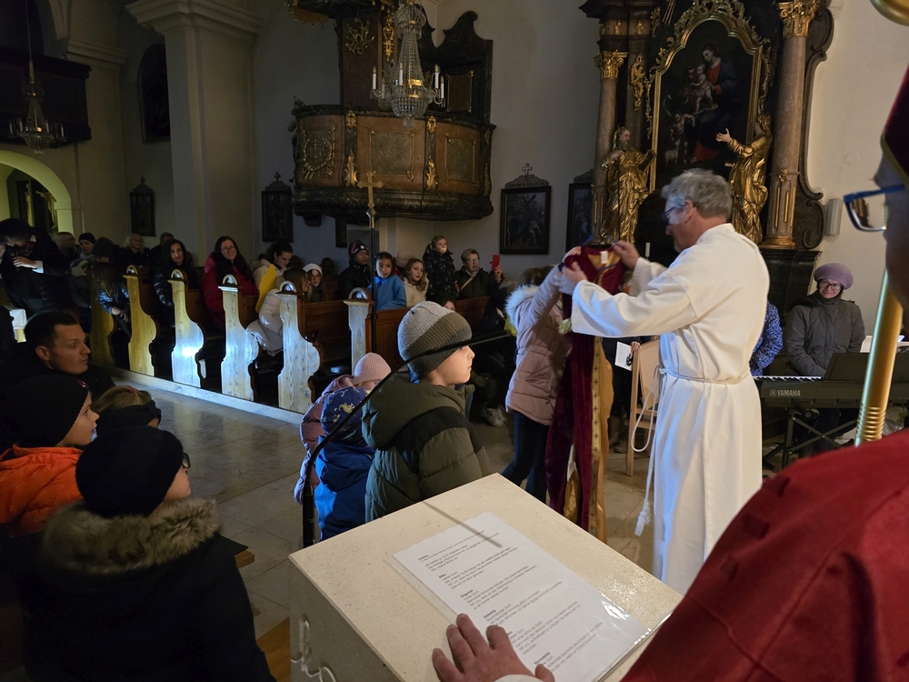 Bevor die Nikoläuse am Vorabend des Nikolaustages „ihren Dienst antraten“, wurden sie von allen in der Kirche anwesenden Kindern und Erwachsenen gesegnet.