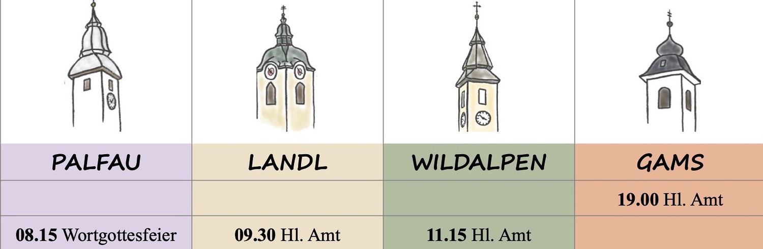 Hinweis: Ab 1. Jänner 2026 feiern wir das Hl. Amt (ebenso auch die Wortgottesfeiern) am Sonntag um 08.00 Uhr. Es ist dadurch für mich wesentlich stressfreier, möglichst pünktlich um 09.30 Uhr zum Hl. Amt in Landl zu sein. Danke für Euer Verständnis dafür!! Euer Pater Engelbert